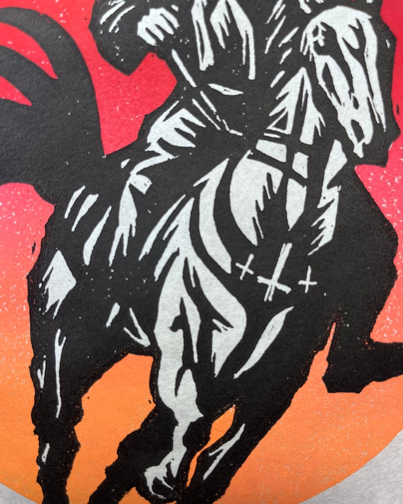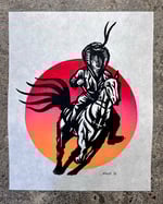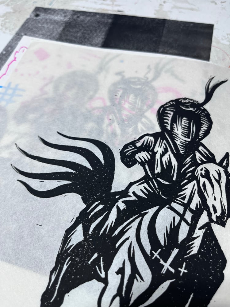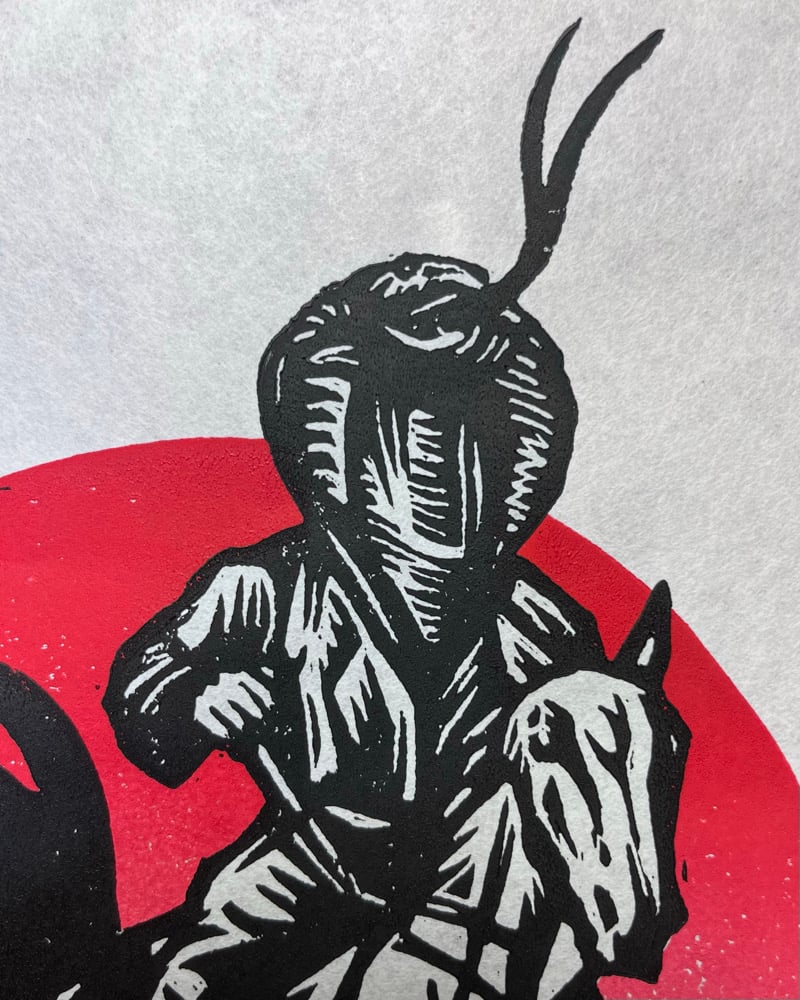This is a hand carved and printed two-color block print on 8”x10” mulberry paper.