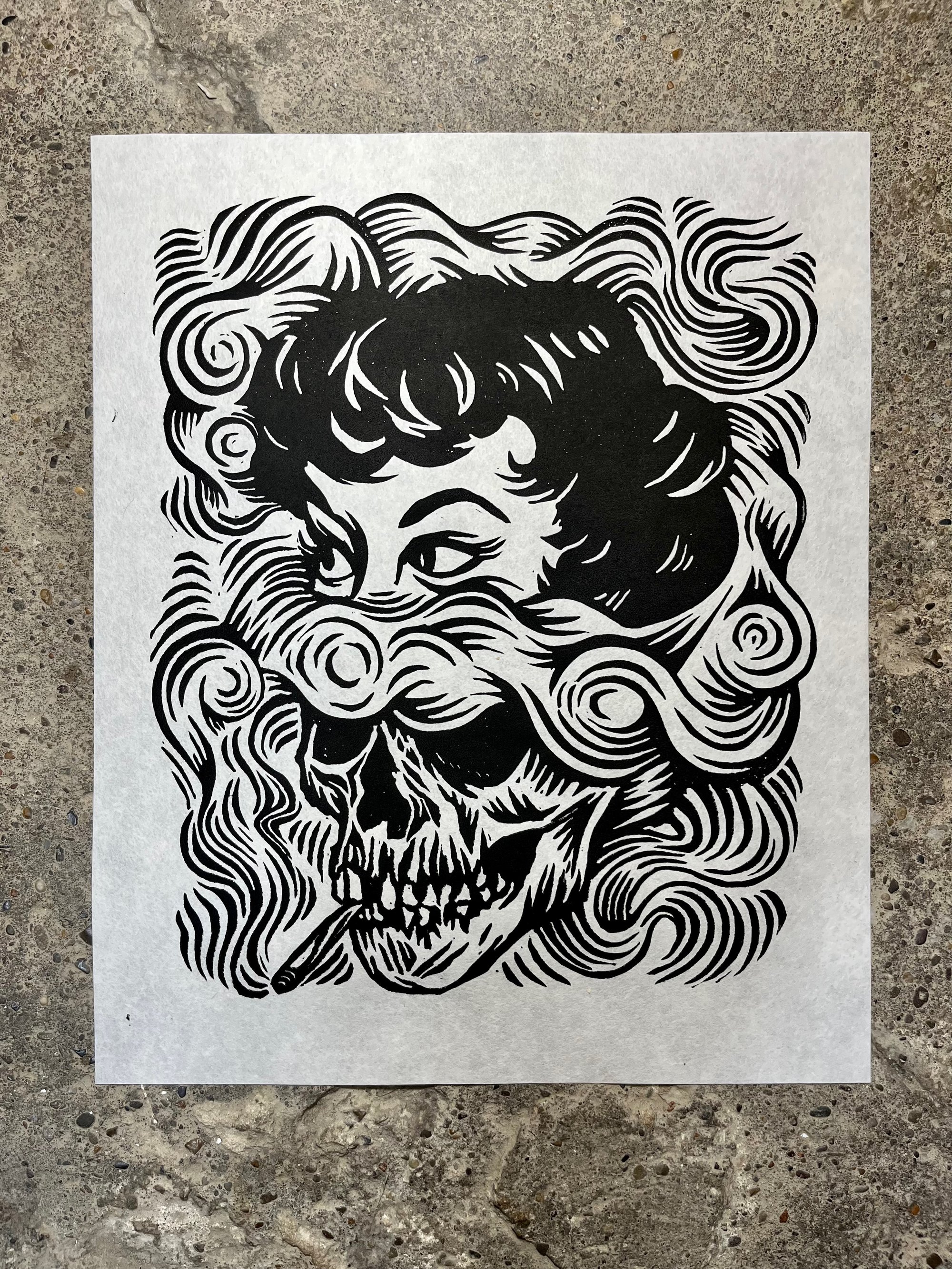 This is a hand carved and printed block print on 9" x 11" paper.