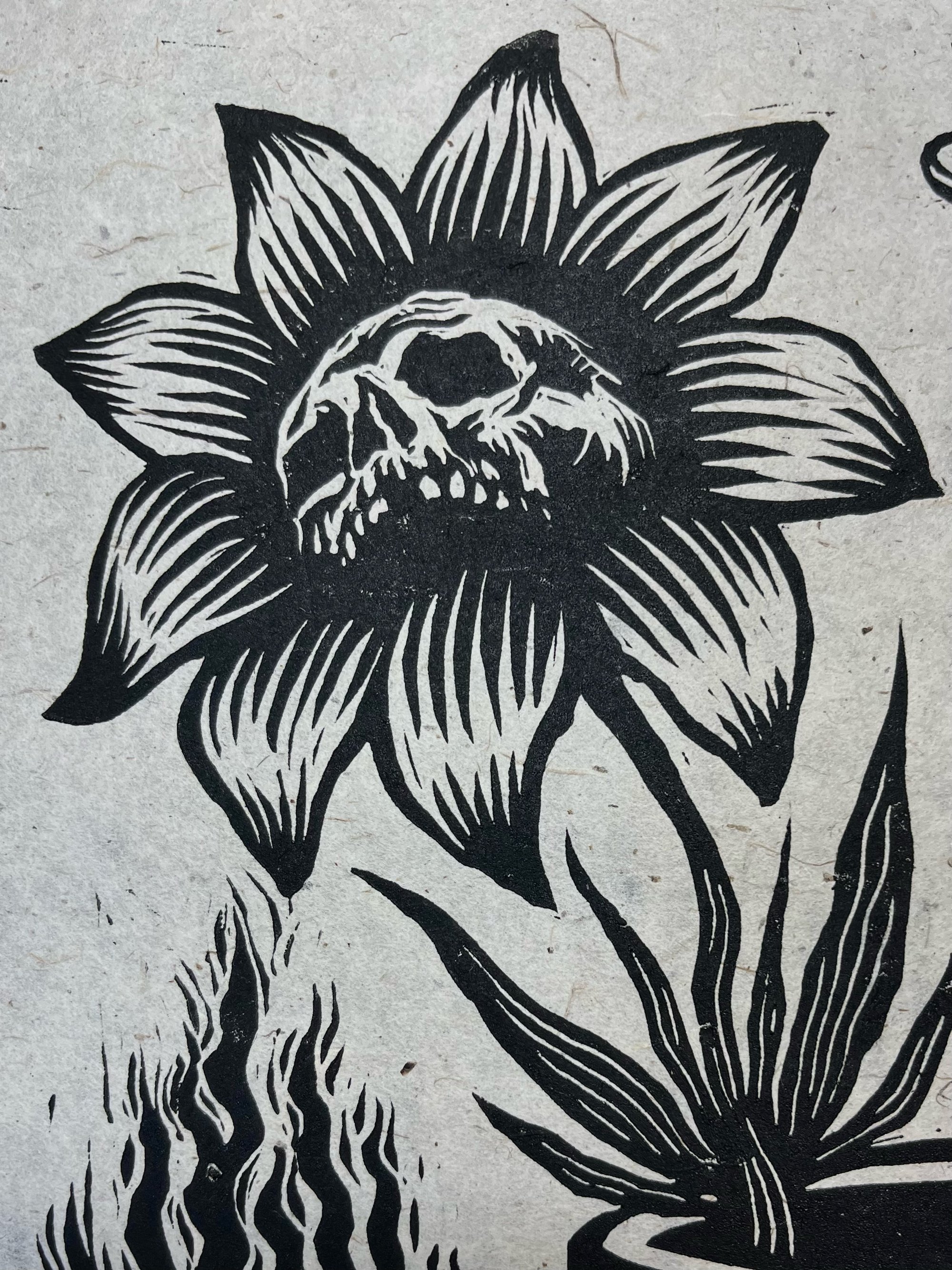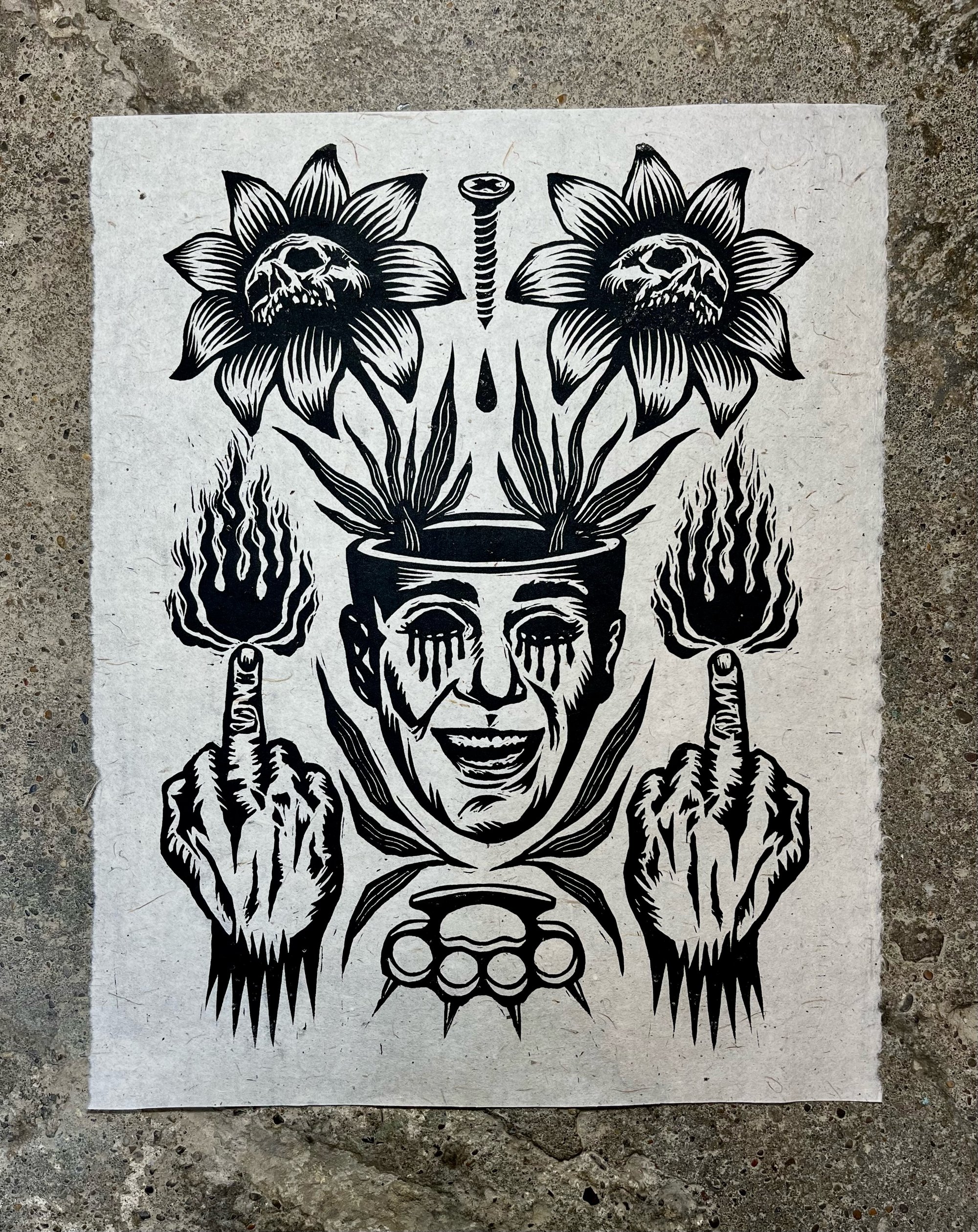 This is a hand carved and printed block print on 11"x14" kozo paper with heavy fibers.